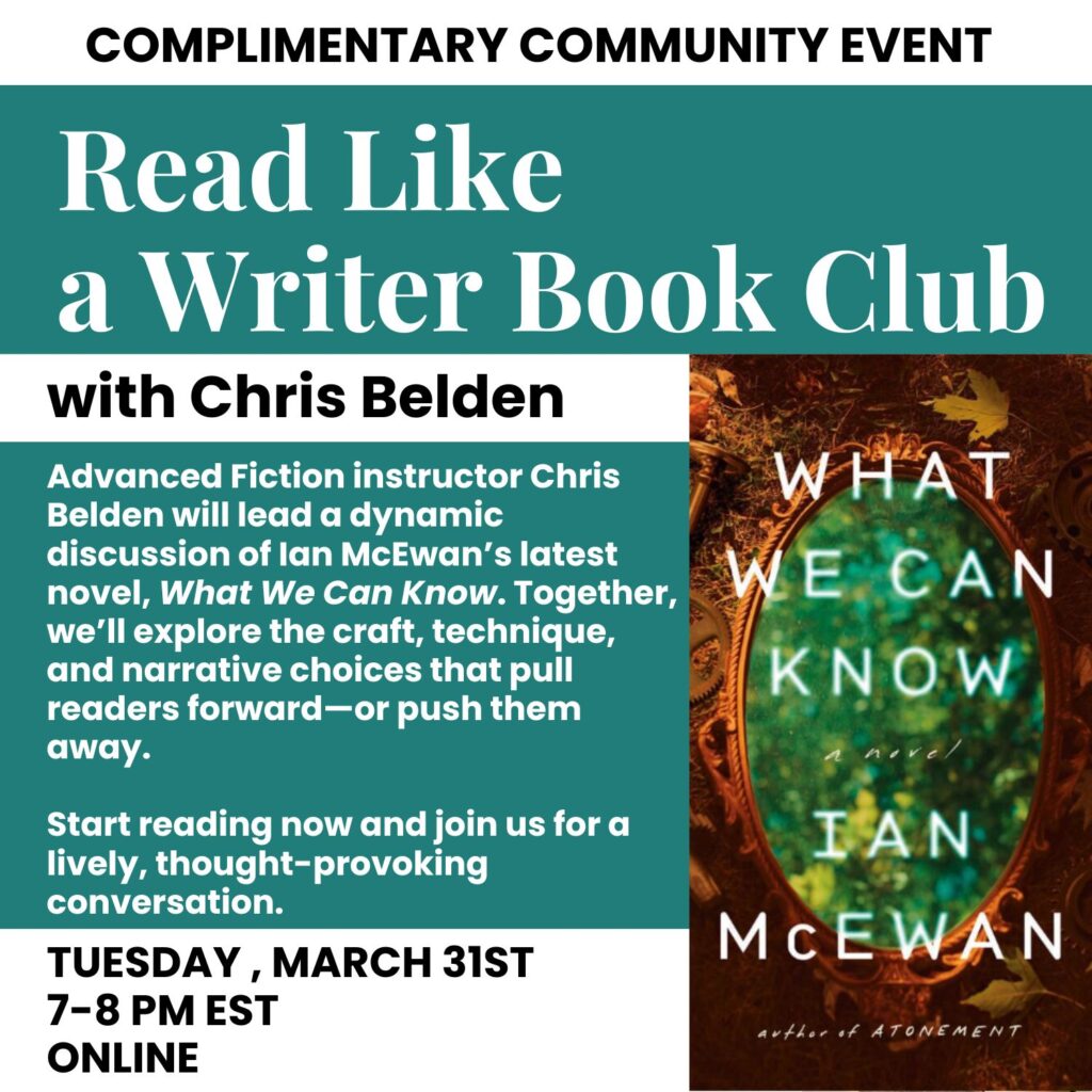 We regularly welcome authors, publishers, and literary agents as part of our one-time and special event offerings. Additionally, we offer frequent community-building events designed to help our writers develop a robust, supportive social network within the industry.