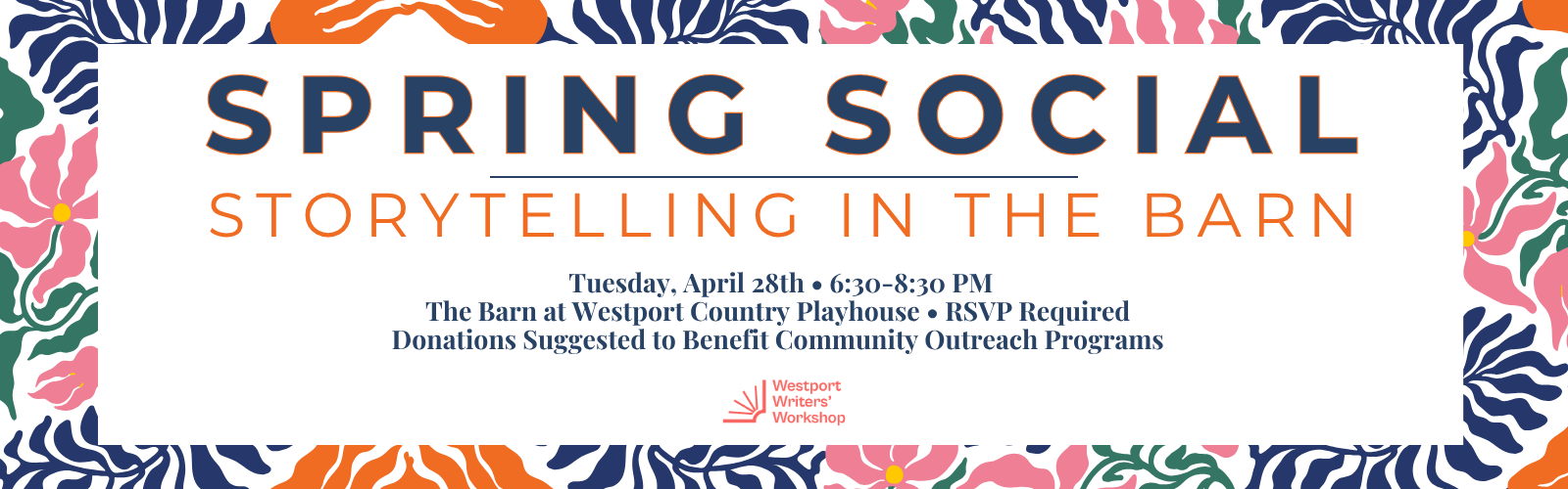 Celebrate spring, community, and the power of storytelling with us. Enjoy light bites, drinks, and conversation as we mingle with fellow writers and friends. The evening will also feature select readings from instructors and advanced students—a showcase of the voices that make our community so vibrant. Complimentary event. Suggested donations will go to support our Community Outreach Program.